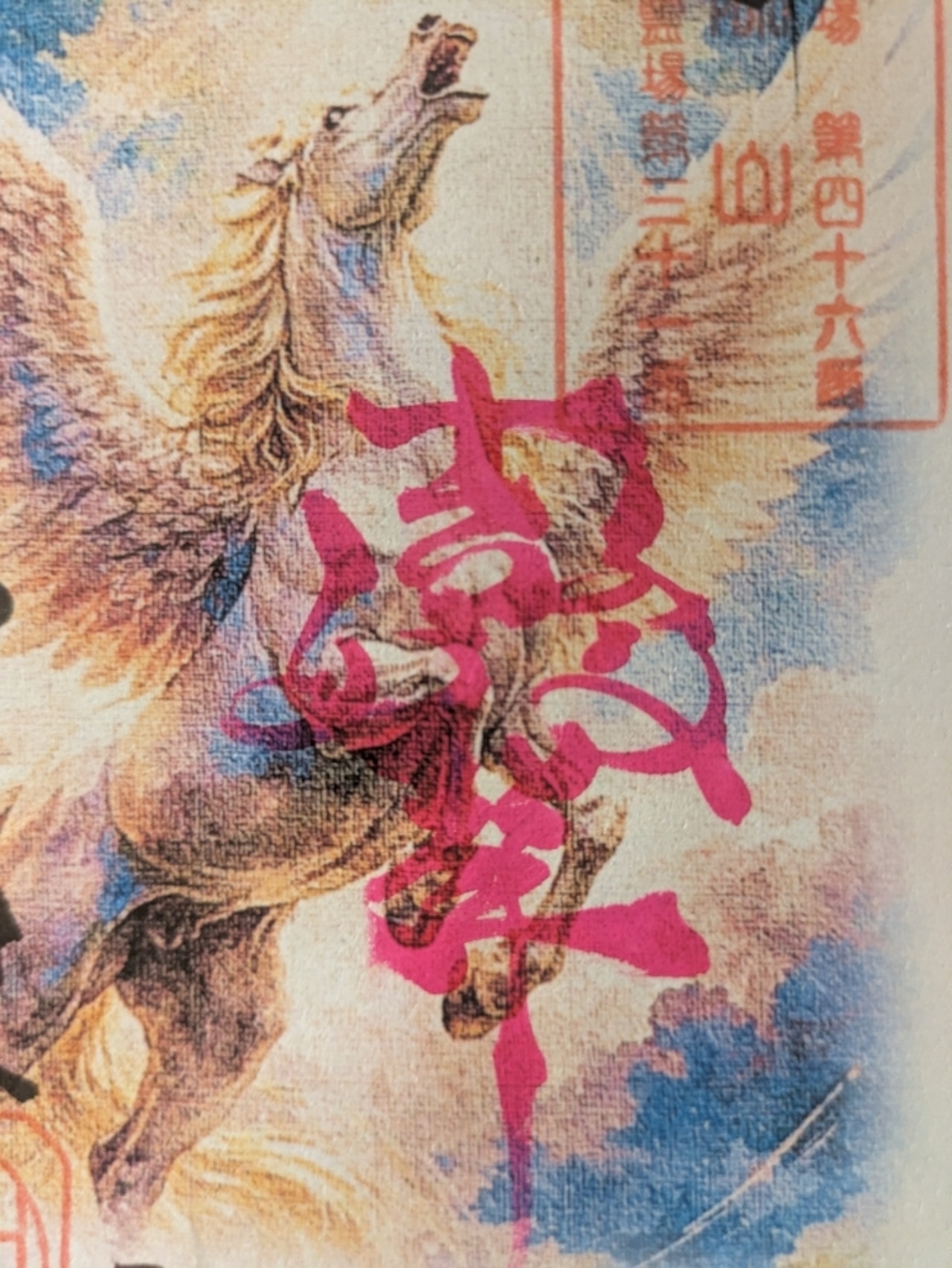 【令和8年限定【午年 如意吉祥】 書置きサイズ たて16㎝×よこ10㎝ 天馬が天に向かって翔け上がっていく様子をあらわしています。 『翔けろ!天馬のように』
