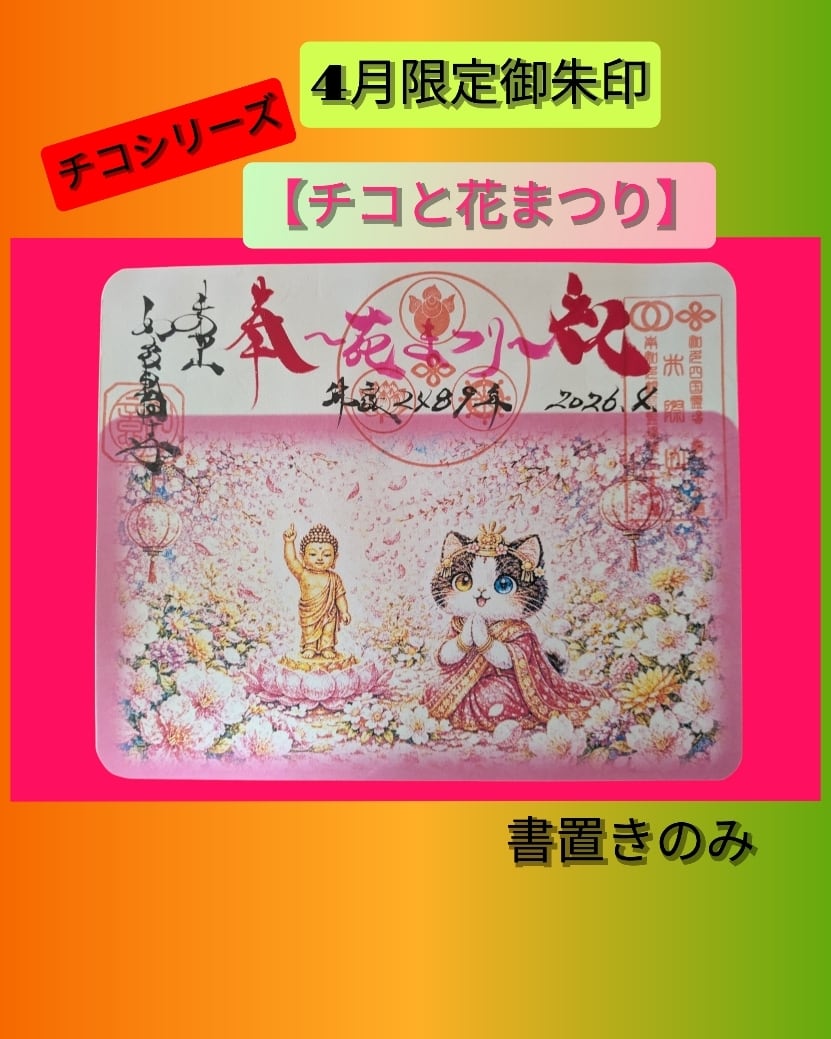 書置き チコシリーズご朱印【チコと花まつり〕 | 愛知・南知多のお寺 井際山 如意輪寺|オンライン授与所