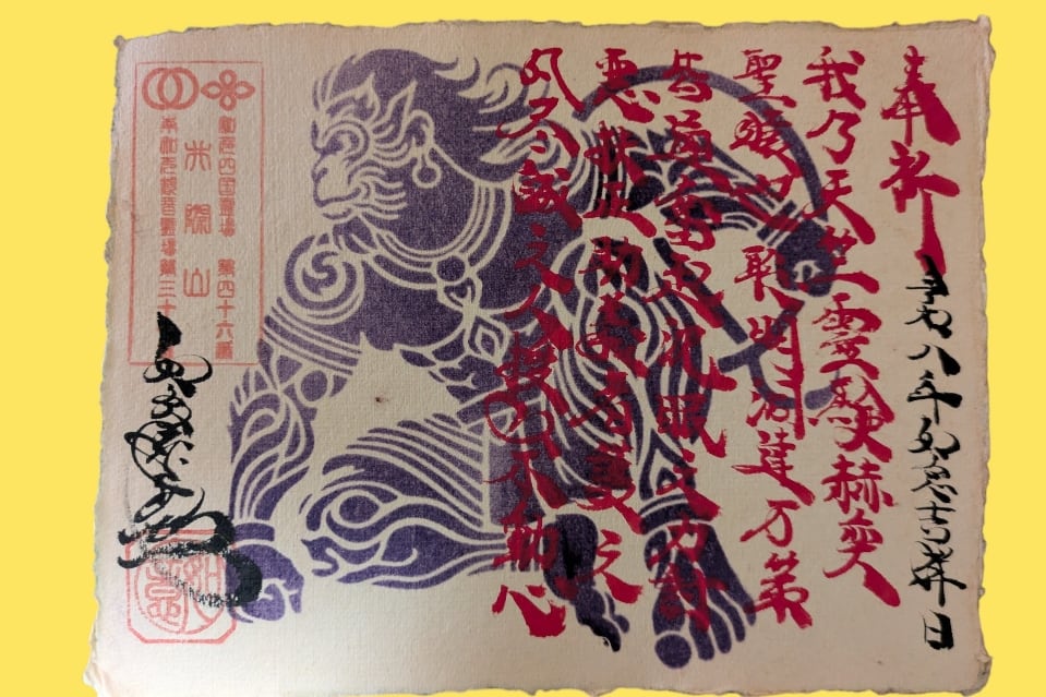 サイズ:たて16㎝×よこ20㎝ アンティークヴィンテージ紙での御朱印です。 壁画風にお書入れさせていただきました。 赤字は漢字表記となっております。 意訳は 我は天竺の霊験あらたかな聖猿なり 聡明にして万の索に通じ、眠れる力を奮い起こし、 悪を討ち正しき者を助け、誠を尽くす者には揺るがぬ不動の心を授けん。